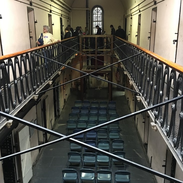 Visits to the jail are via guided tours only. The entrance hall, gift shop, and old visiting area can be viewed by anyone, but to go farther requires a ticket. When a tour begins, visitors are brought into a room to watch an informative video about the history of the jail and its most famous occupants, the so-called Molly Maguires. If you’re not familiar with the story of the Mollies, they were mine workers in the 19th century who were accused of forming a secret society and murdering some of their bosses. Modern historians believe they were most likely framed and that the entire existence of the Molly Maguires (at least in Pennsylvania) was invented by the coal mine owners to create a scapegoat and make the public suspicious of the poor immigrant miners. Much of the jail tour centers around the Mollies.