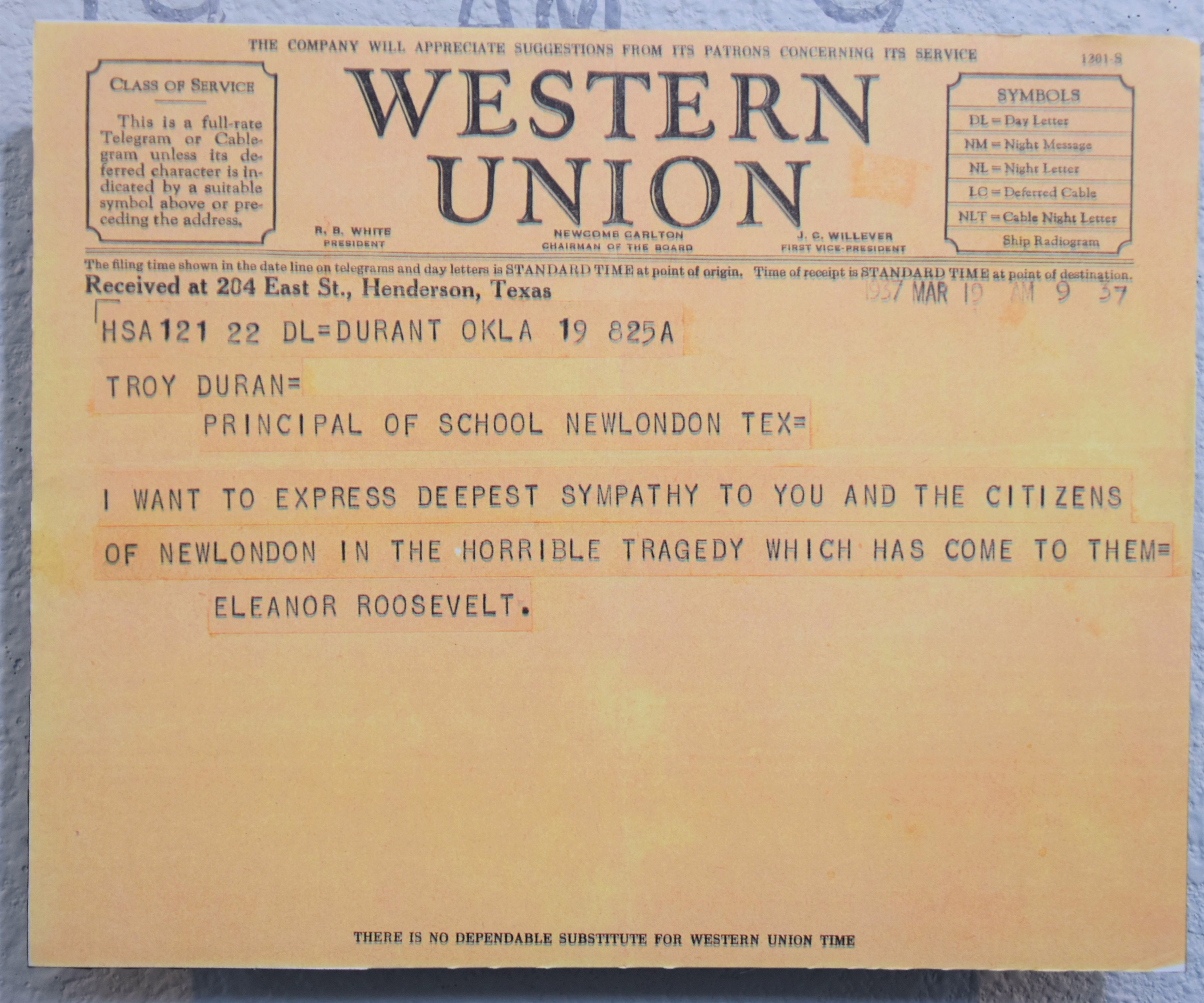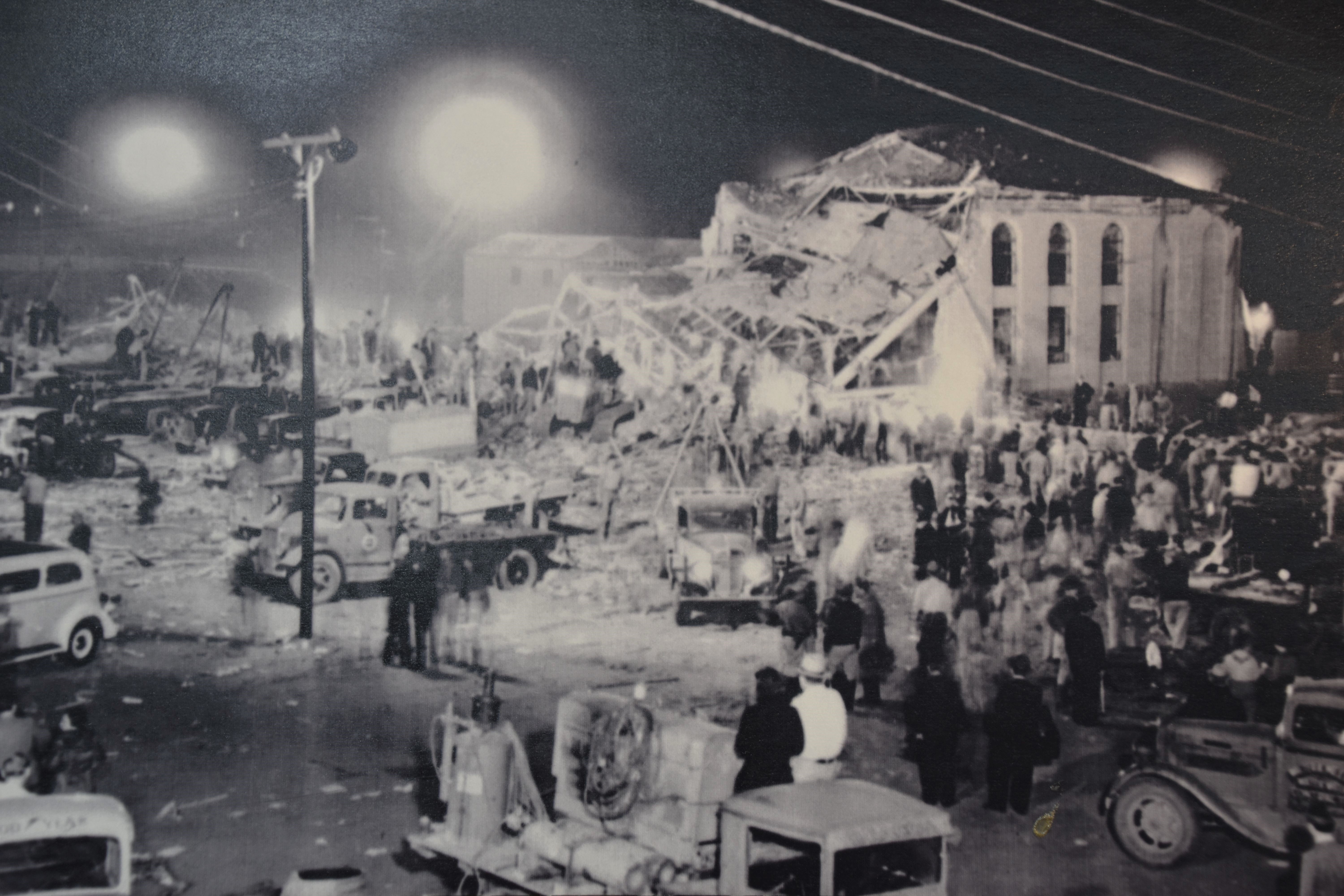 Henderson radio announcer Ted Hudson broadcasted from New London during the hours that followed the explosion. Parents who had visited the makeshift morgues and area hospitals would report the other children and adults they saw to him. Hudson, in turn, would announce the information to help those still searching for their loved ones.