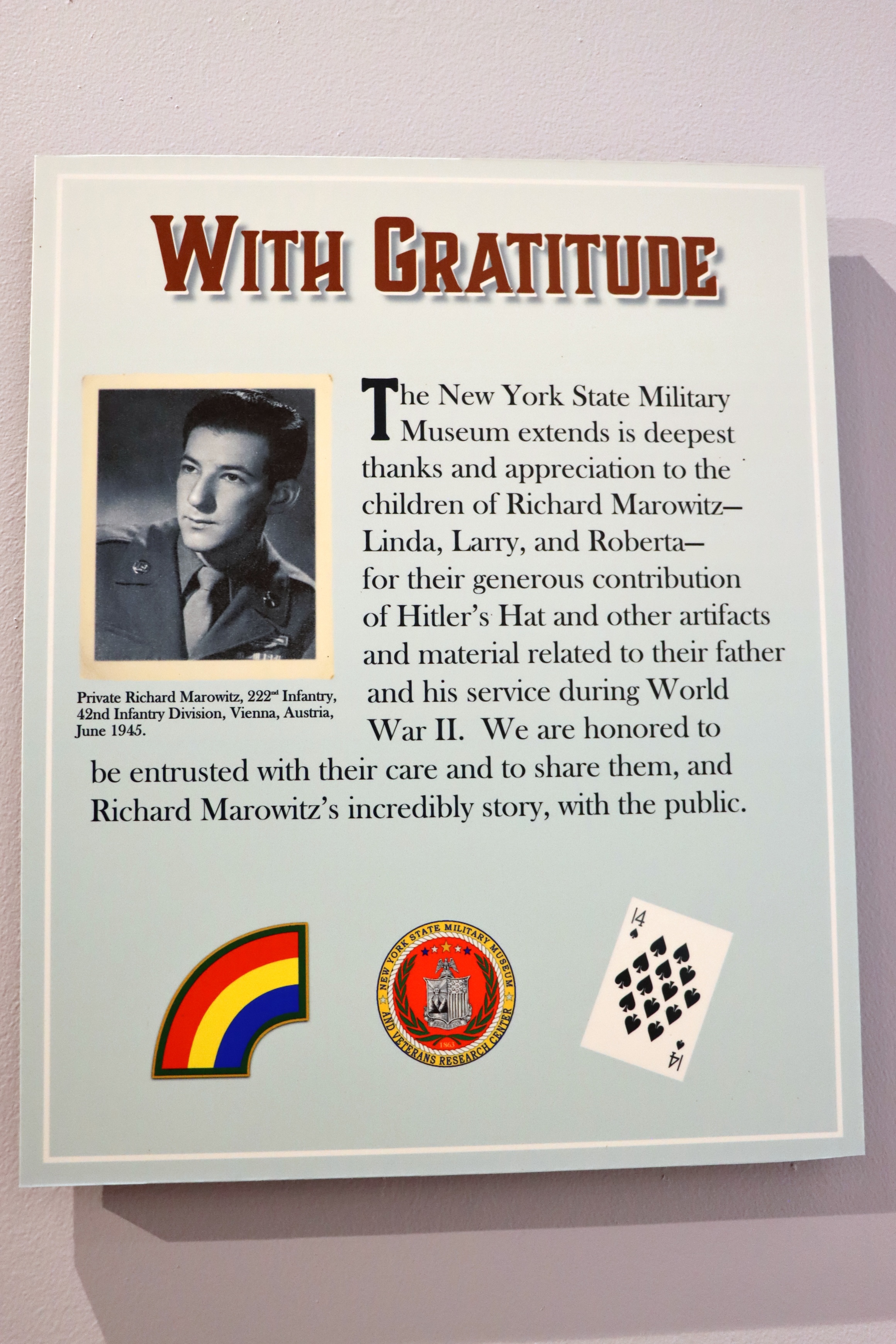Hitler’s Hat came home to the States, where it was placed in a duffle bag and tucked away in the cellar of Mr. Marowitz’s home until the mid-90s. He was a member of the Jewish War Veterans. He attended a meeting where soldiers and their families were asked if they had any souvenirs from the war. That’s when the hat came out of hiding, so to speak. Richard began accepting speaking engagements at schools in and around Albany, New York, sharing the things he and his comrades had witnessed and lived through during the Holocaust years and the murder of more than 6 million Jews. Richard hoped that by speaking about the war and the horrors he’d seen, he'd help prevent anything like it from happening again.