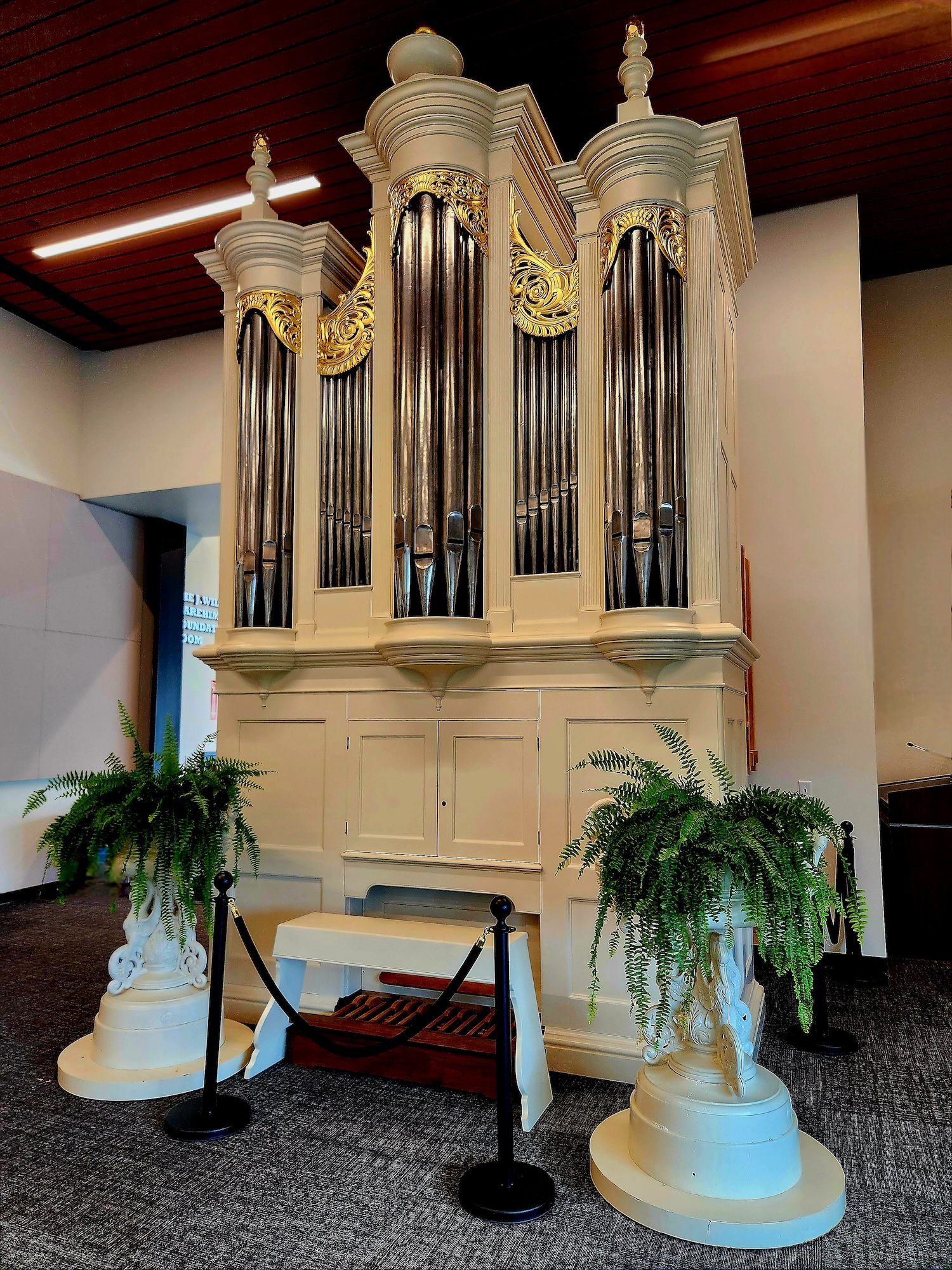 One of the most magnificent items on display was the Tannenberg Organ. The 627-pipe organ was built in 1804 for Christ Lutheran Church, one of forty-five organs constructed by David Tannenberg. The cost of the organ was 355 pounds of Pennsylvania Currency. Sadly, the builder suffered a stroke, causing him to fall from the scaffolding while installing this organ, strike his head, and die. The organ was first played at his funeral.