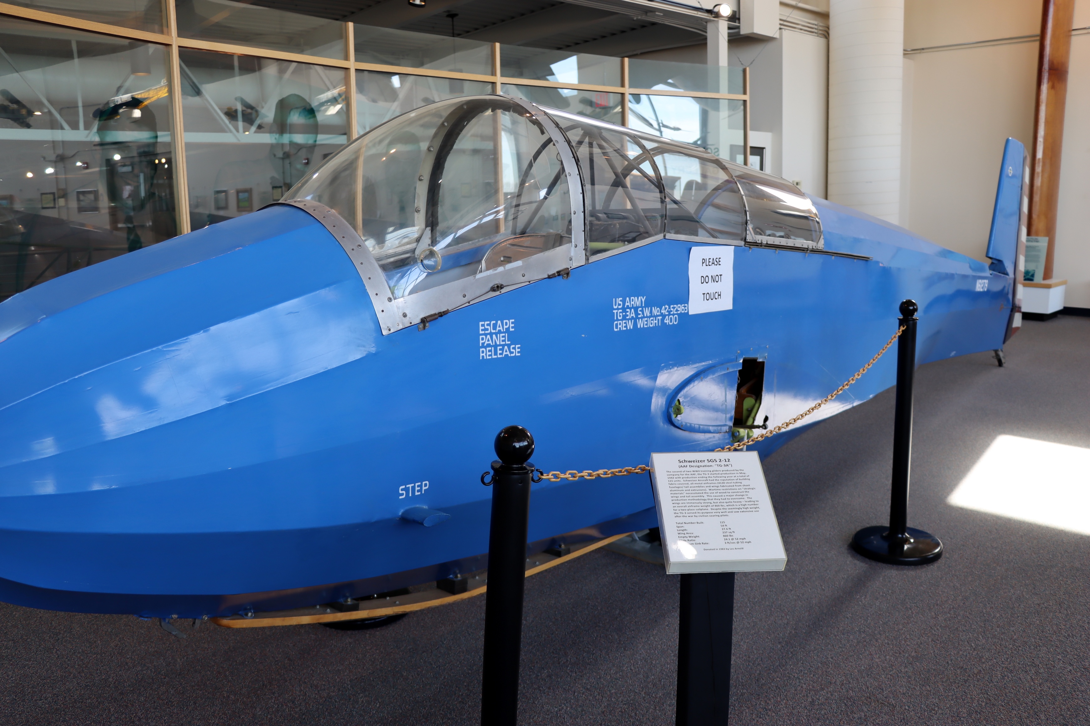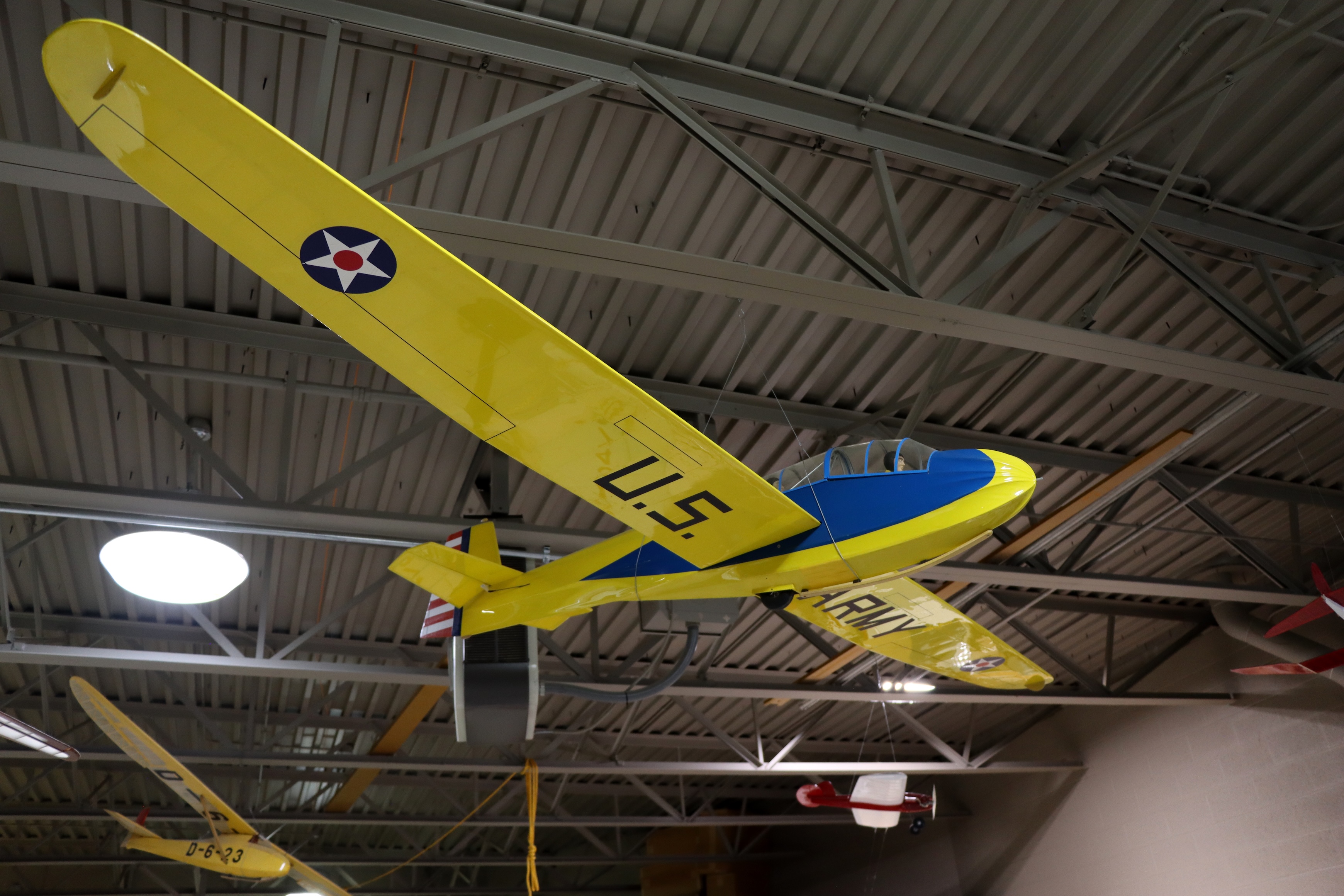 Peering over the railing of the mezzanine down to the floor below offered a great view of so many different types of gliders. I caught sight of one that was used during WWII – a favorite study of mine - and knew I’d have to get closer to learn about its function during the war before I left for the day.