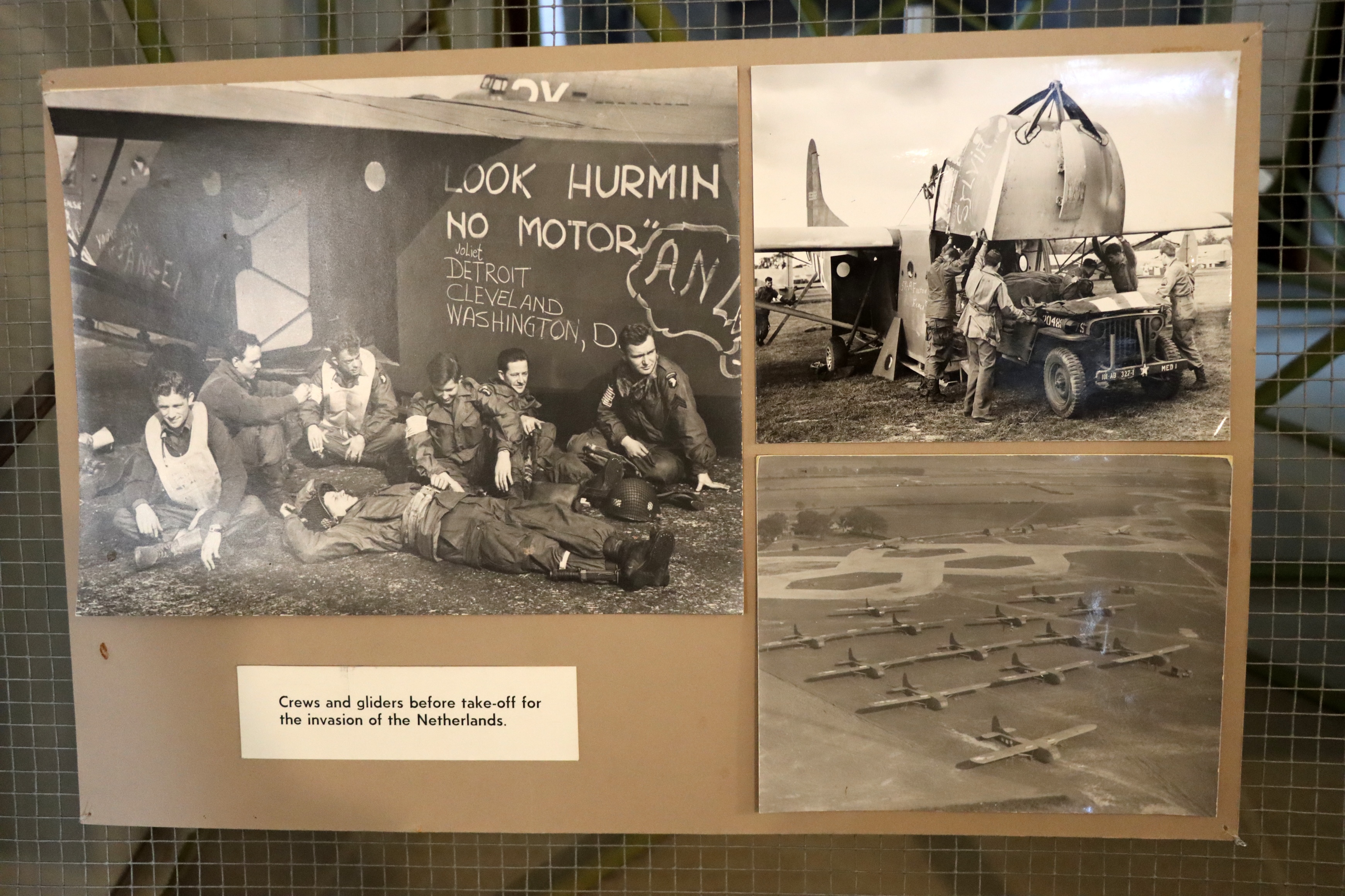 “Think about this military glider as a freight car,” The guide states when we make our way to the sailplane. “It could land safely with full loads of infantry, field pieces, and motorized equipment. They were also produced and repaired at a fraction of the cost and time it took to make a powered plane.” She explains that highly trained Gliderborne troops manned the gliders. ”They used the sky as their highway, rather than a ship on water or a truck on land.” When I asked if we could go inside, she smiled. “Absolutely!” It was strange to step inside the section of a vessel on exhibit; I thought about the men and women who were in the war, in this perilous position, wondering how many made it out alive. I said a silent ‘Thank you,’ before I exited the glider.