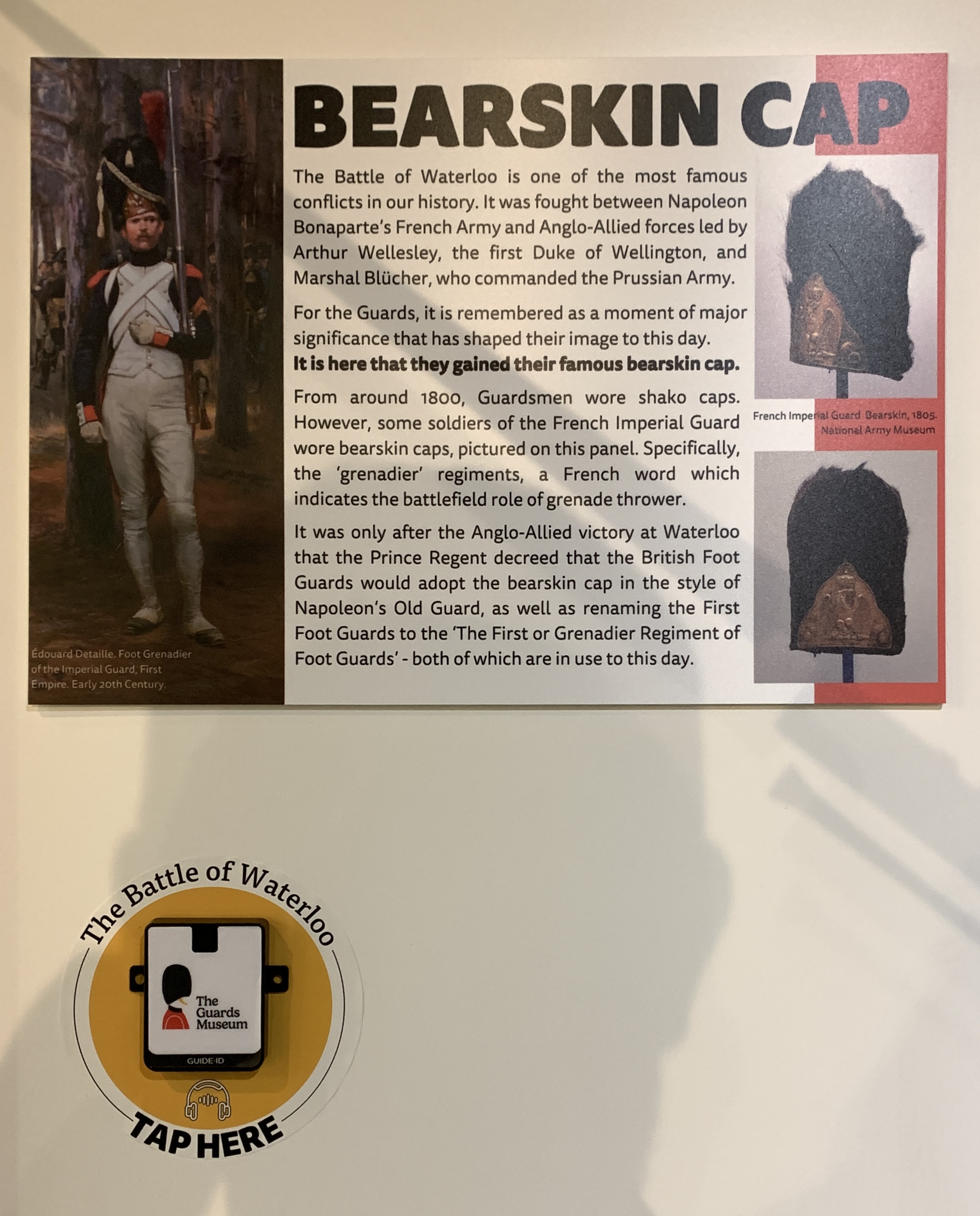 To welcome visitors to the museum – and the Guards – a fantastic six-minute introductory video sets the scene, recounting the history of the regiments. We may all be familiar with the Guards’ red-tunics and bearskin headgear, but did you know each regiment has a unique uniform?