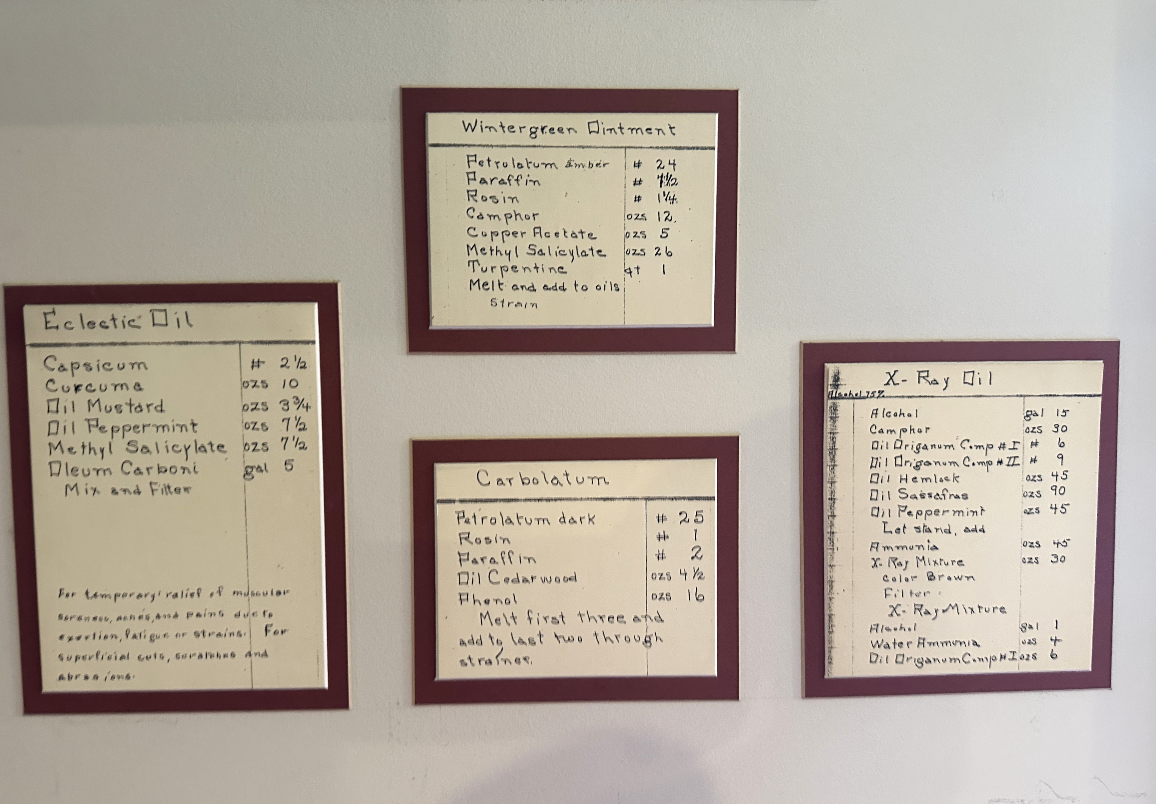 The Patent Medicine Museum, housed in Dr. Seelye's former laboratory behind the mansion, displays fascinating artifacts from the A.B. Seelye Medical Company. Founded in 1890, the company produced over 100 products with memorable names like Wasa-Tusa, Ner-Vena, and Fro-Zona, sold across fourteen states.