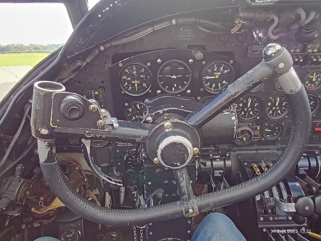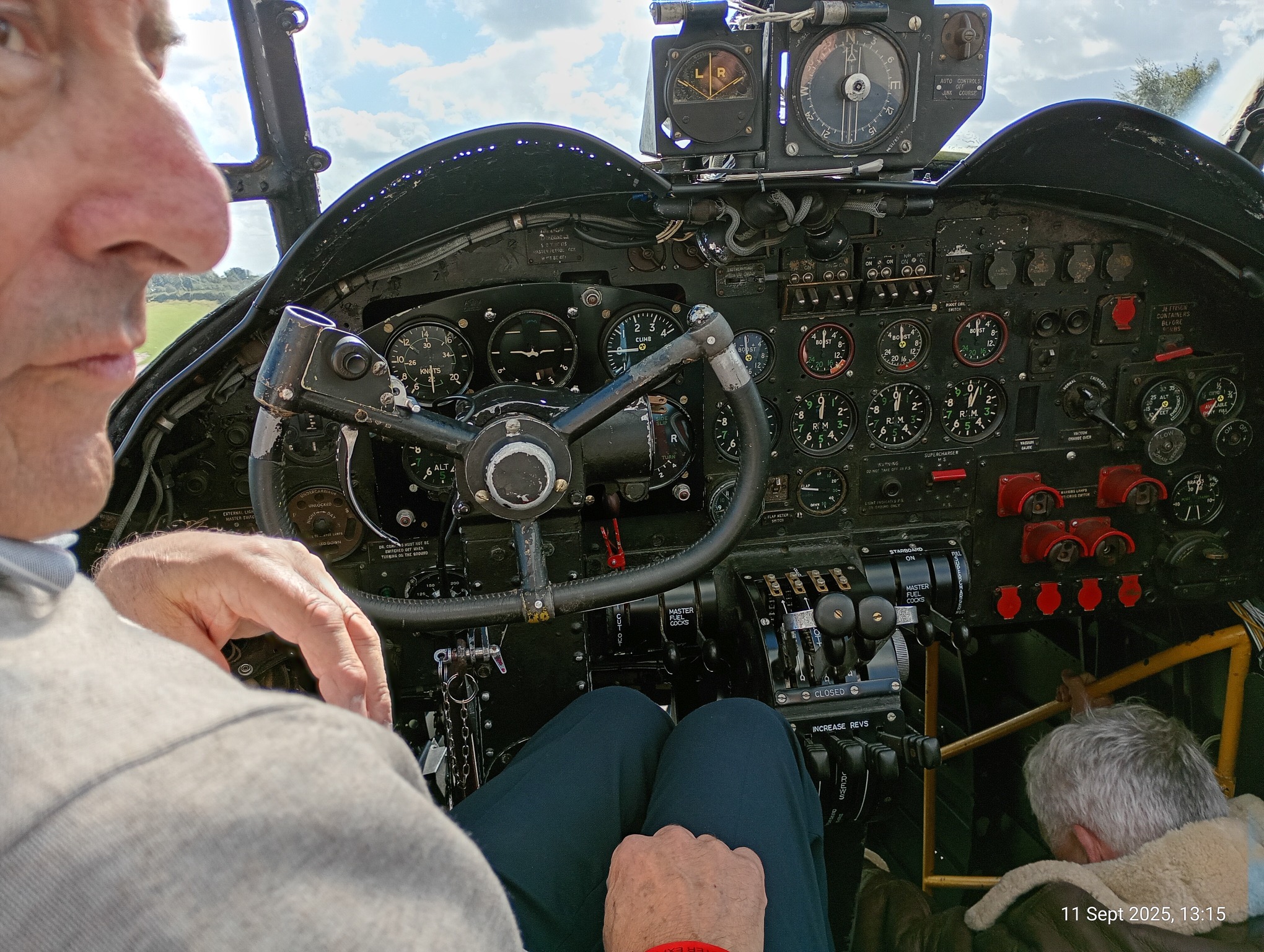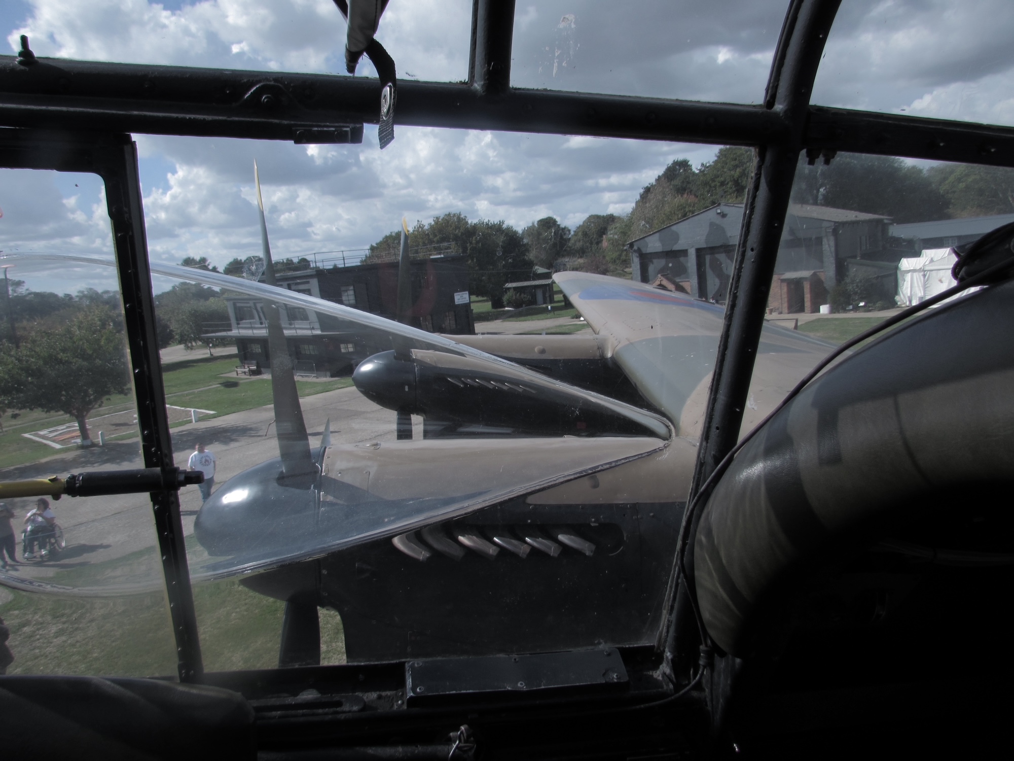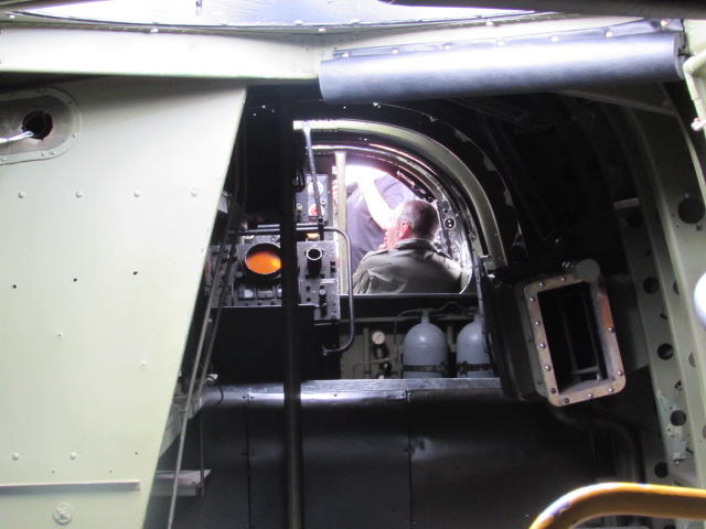 Those of us up the front went in first after we crossed the infamous main spar, so more elegant than others we took turns in the nose where the bomb aimer was stationed and the pilot seat for the photo out of the window.