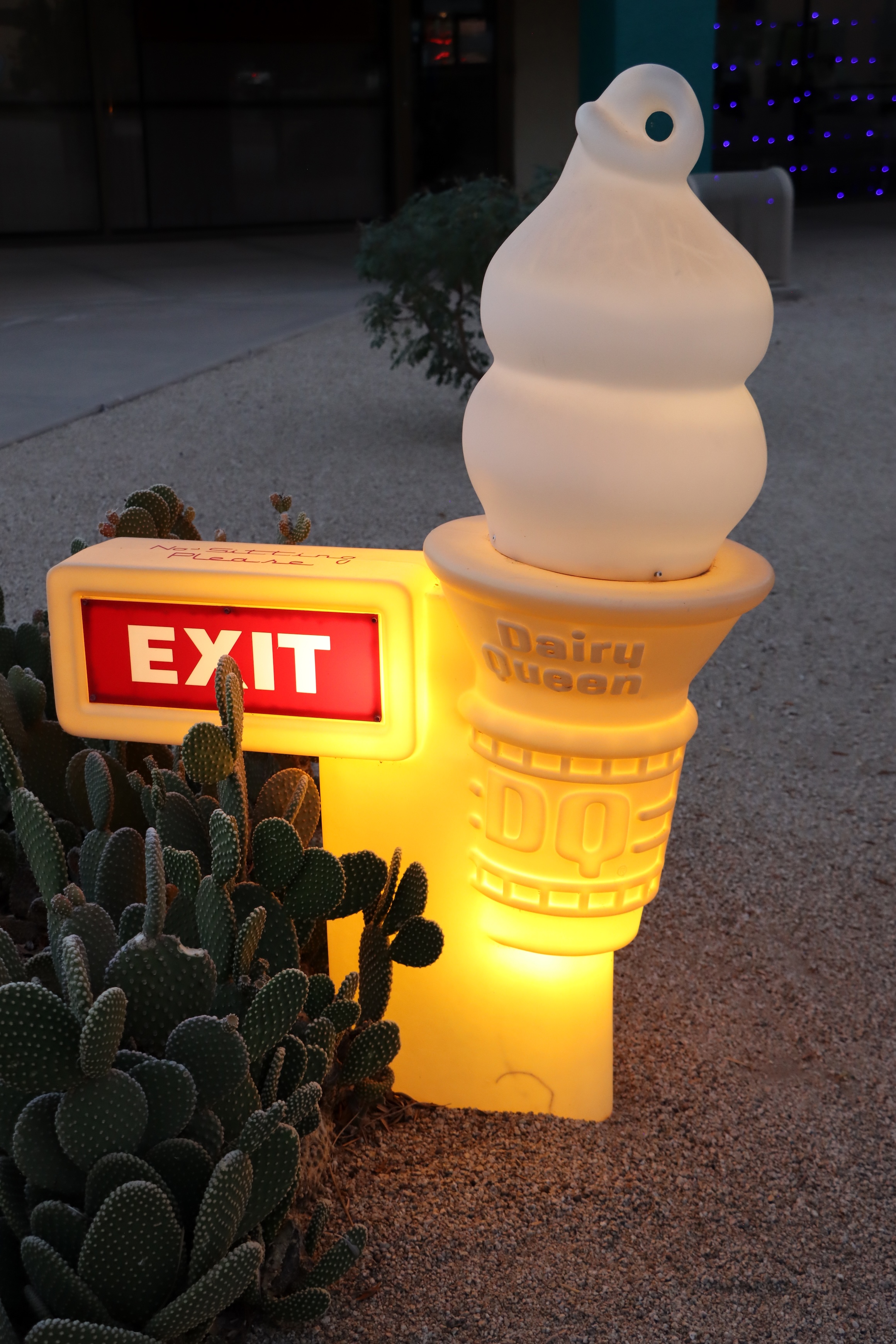 My sister Karen laughed at the Dairy Queen sign, as we often stopped there while growing up in our hometown, Franklin, Massachusetts. There were hotel signs, photo shop signs, shoe store signs, café signs, and more – 14 in all. 11 of them are restorations, while Paul, ‘The waver’, is a replica.
