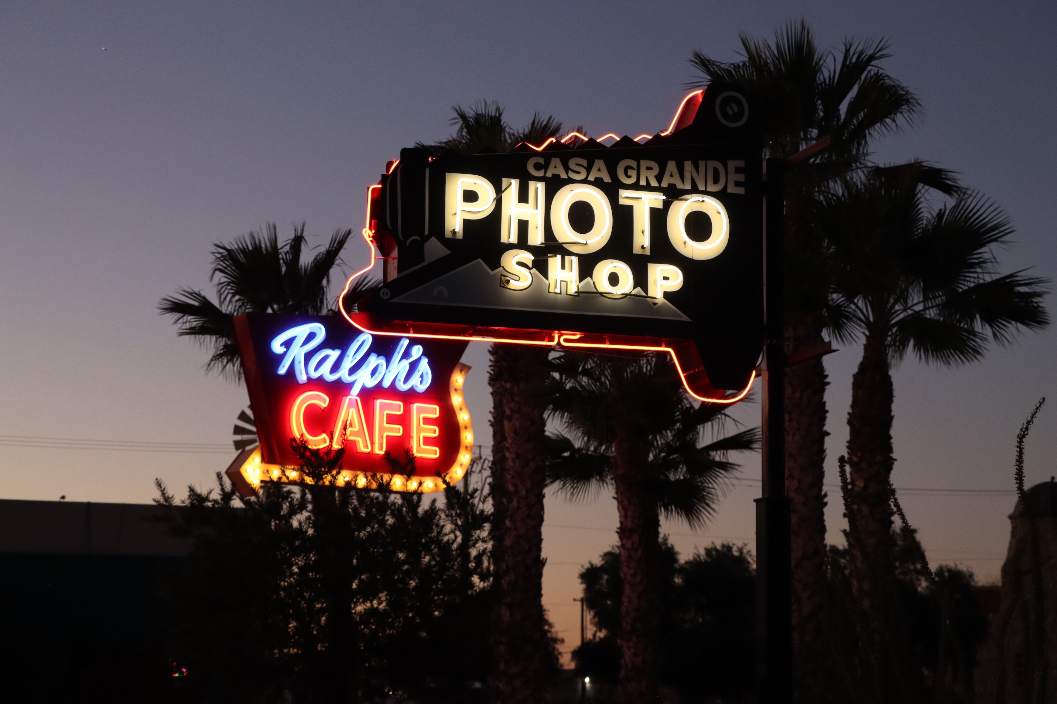 Another favorite sign was Casa Grande Photo Shop. Jim Gorraiz was a renowned photographer and owned the shop. He died in 1990, and that’s when his neon sign began its journey to the neon sign location.