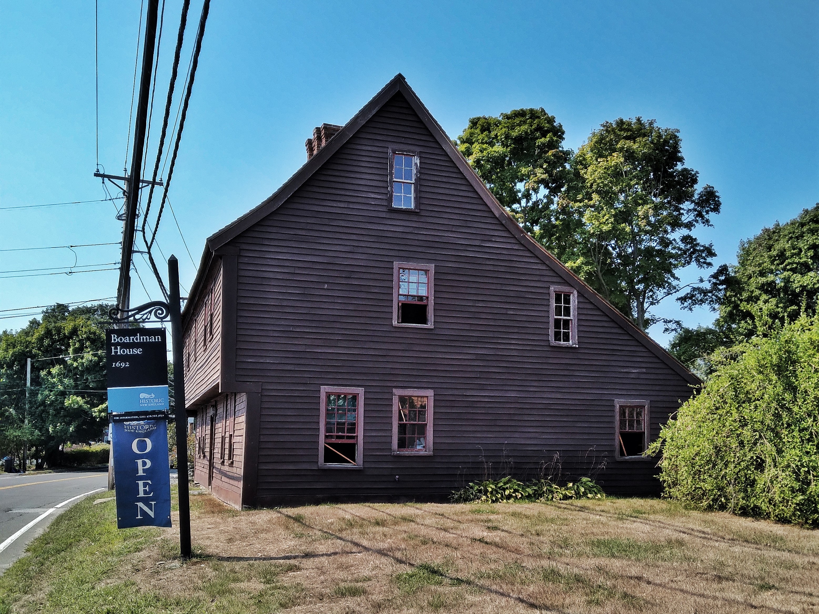 Historians currently believe William Boardman bought land to build a house in 1686. The Boardman House was previously thought to be built the next year in 1687, but research conducted by the Oxford Dendrochronology Laboratory proved that the house was built in 1692. In the next four years until his premature death at age 38, Boardman made improvements to his house, including a kitchen lean-to. This addition is super exciting for house nerds, because the original exterior features of the house were preserved in the wall. The Boardman family lived in this house until 1911, making decorative updates along the way, until they sold the property to Jacob Wilbur, a real estate dealer and precursor to modern day housing developers.