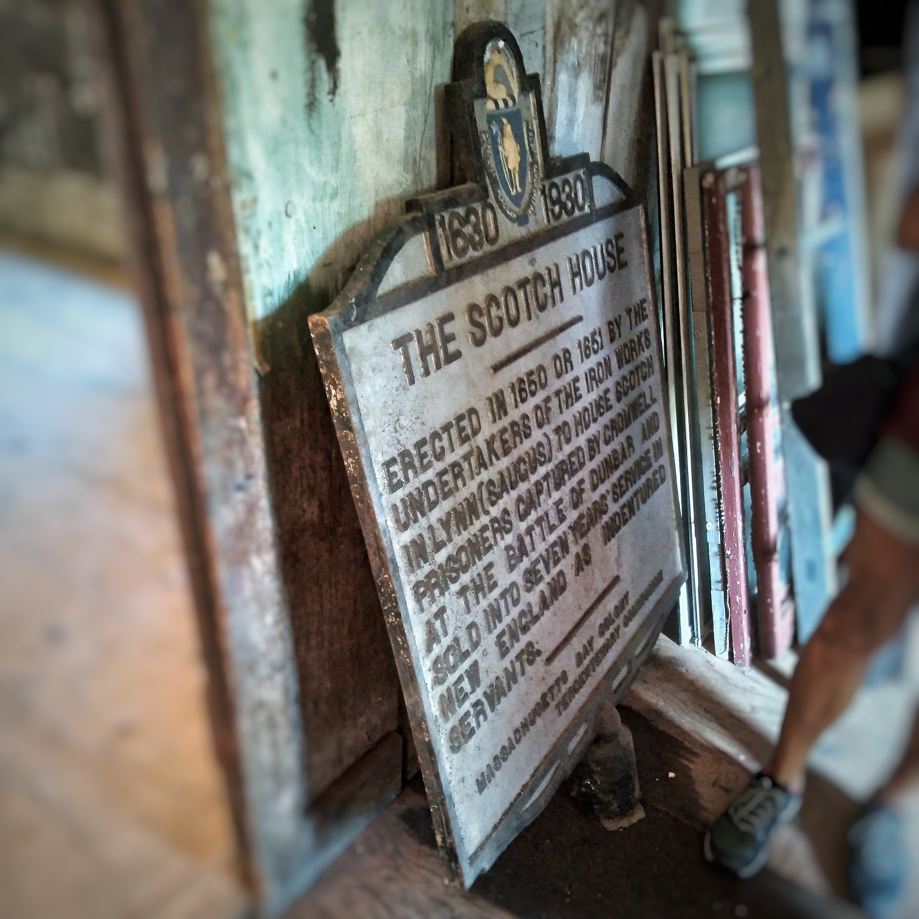 But what about the Scottish residents like at Iron Works House? Before dendrochronological research, the house was believed to be built in 1650 to house Scottish workers at Saugus Iron Works, leading to other incorrect names like “Scotch House” after potential residents and “Bennett House” after the first recorded European occupant of the property, Samuel Bennett. Call it clever or deceptive, this marketing technique was used by Appleton to garner donations from Scottish-Americans to restore the house. A sign with this information was put up by the Massachusetts Bay Colony Tercentenary Commission in 1930 and still resides in a closet at Boardman House.