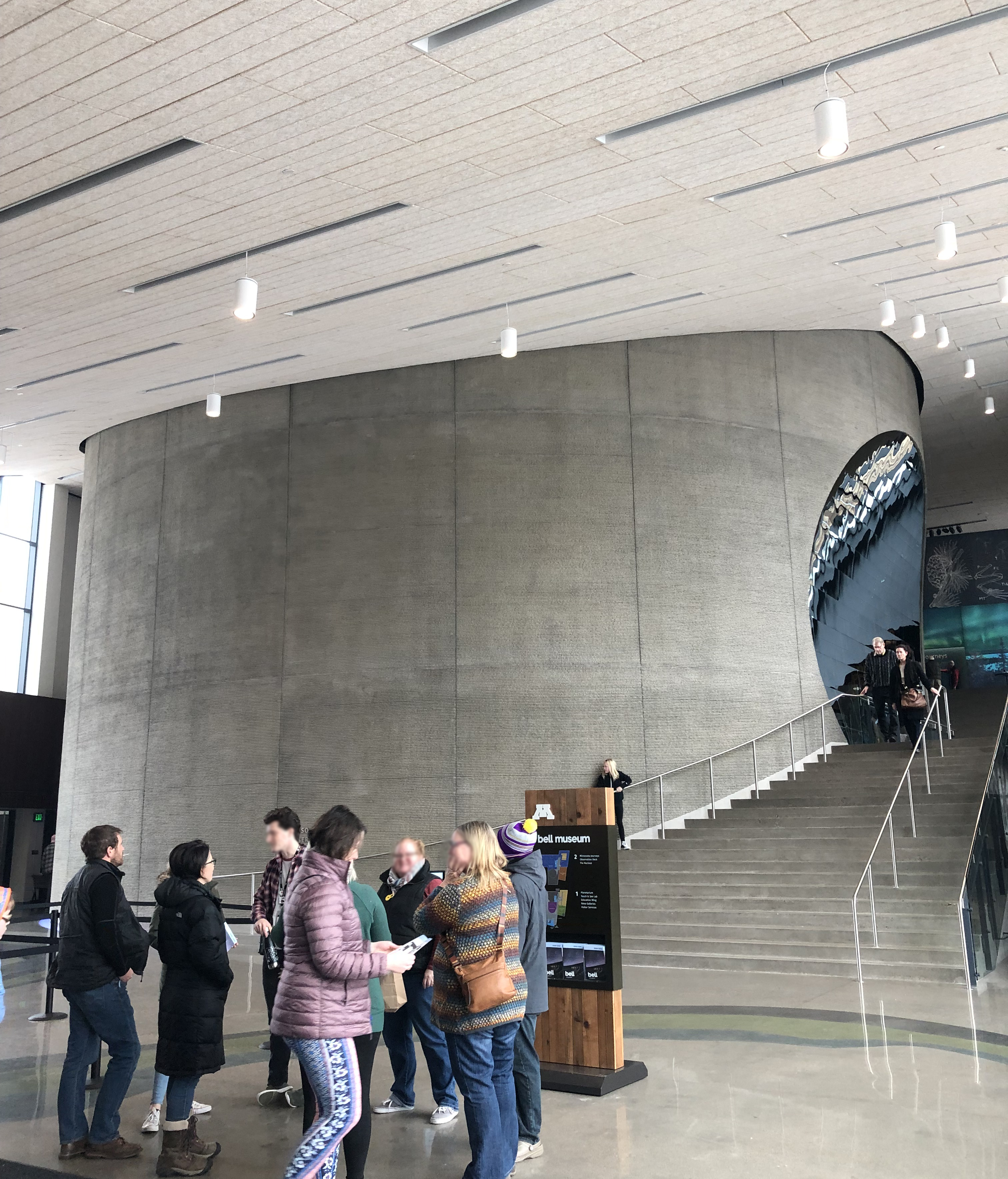 Arriving back into the lobby, we move upstairs to the First floor, admiring the bulging planetarium wall and the views over the grounds as we ascend. The first floor is dedicated to the Minnesota Journeys Exhibition, which begins with an object-light, tech-heavy exploration of the origins of the universe featuring lots of interesting interactives and large-scale images of celestial bodies. While there is a lot to intrigue the average visitor, the gallery section seems directed at a teenage audience, with plenty of space for school groups and digital interpretation expertly demonstrating some fascinating principles of physics and chemistry relating to astronomy.