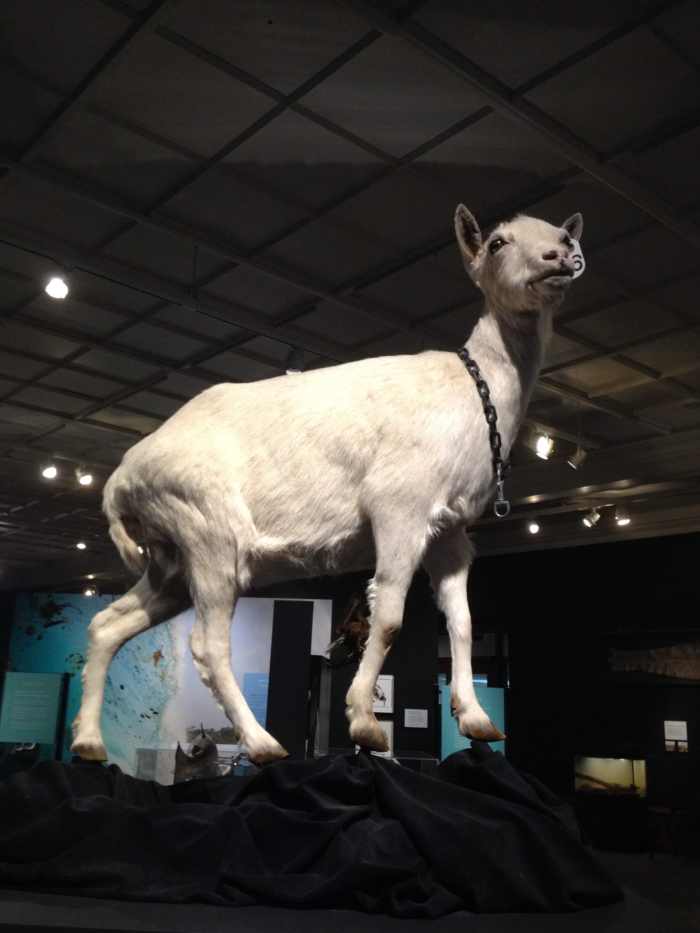 Do you know Dolly the sheep? She became world famous in the nineties as the first mammal to be cloned from an adult cell. She is currently on display at National Museums Scotland. Now, have you ever heard about the goat Freckles? She is one of the first four BioSteel goats to be engineered. These goats were genetically modified to produce spider silk in their milk for use in manufacturing bulletproof armor, fishing line, and human tendon replacements. Their offspring live on research farm alongside other spider silk-producing organisms, including silkworms, plants, and bacteria. Freckles is on display at the Center for PostNatural History, located in Pittsburgh, Pennsylvania.