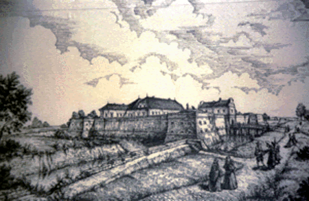 According to the project of Venetian Vincenzo Scamocci the castle territory has square form and it takes 16 hectares of the land. The building process was under supervision of military engineer Andrea dell'Acqua. This castle was reflecting the newest achievements of the European fortification art. The castle general view in the middle of the 17th century was reproduced on the engraving by the Dutchman Wilhelm Hondius.
