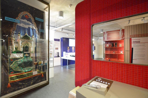 The Lightbox Museum and Art Gallery was opened in September 2007, and is designed by Marks Barfield, the architects of the London Eye. It is situated in the centre of Woking, a town of over 100,000: the town is mostly known as a commuter town as, attracted by the good train service, many of the inhabitants work in London, but in recent years several well-known companies, such as McLaren, manufacturers of Formula 1 racing cars and supercars, have based their headquarters in Woking. The present town grew around the railway station, which came in 1838 to an undeveloped area of heathland, being two miles away from the original settlement of Woking, which contained Woking Palace, home of Lady Margaret Beaufort, the mother of King Henry VII. Land was cheap and the railway offered good communications, so Woking became the home of several large institutions – Brookwood Cemetery (at one time the largest in the world), two prisons (later barracks), a pioneering mental hospital, and the first crematorium in the United Kingdom. The Cemetery company sold land not only to these institutions, but also for a home for retired actors, instigated by Charles Dickens, becoming the Royal Dramatic College: this was financially unviable and was sold in 1889 to become the Oriental Institute, whose founder Dr Gottlieb Leitner, built the nation’s first purpose-built mosque in the grounds. While the Institute became a series of factories, the mosque has flourished and its fame is reflected in the large numbers of Muslims from the Indian Sub-Continent and Africa who have made Woking their home since World War 2.