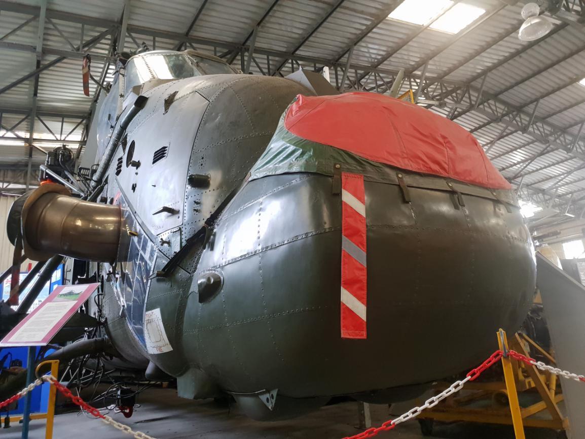 Two HU.5s crashed during an attempt to get SAS from South Georgia on the 22nd of April. Due to the horrific snow storm, the helicopters crashed into the Fortuna Glacier. Then, on the 25th of May, the British merchant navy ship, the SS Atlantic Conveyor, was hit by two Argentinian missiles. 12 sailors lost their lives. Three days later, the ship sunk whilst under tow. With it, so did 6 HU5 helicopters. This Westland Wessex here is, of course, not one of the wrecked helicopters. There is, however, a real life wreckage here at the museum. It is the wreckage of a Nimrod R1, or, as it was unofficially known, ‘The Beast’.