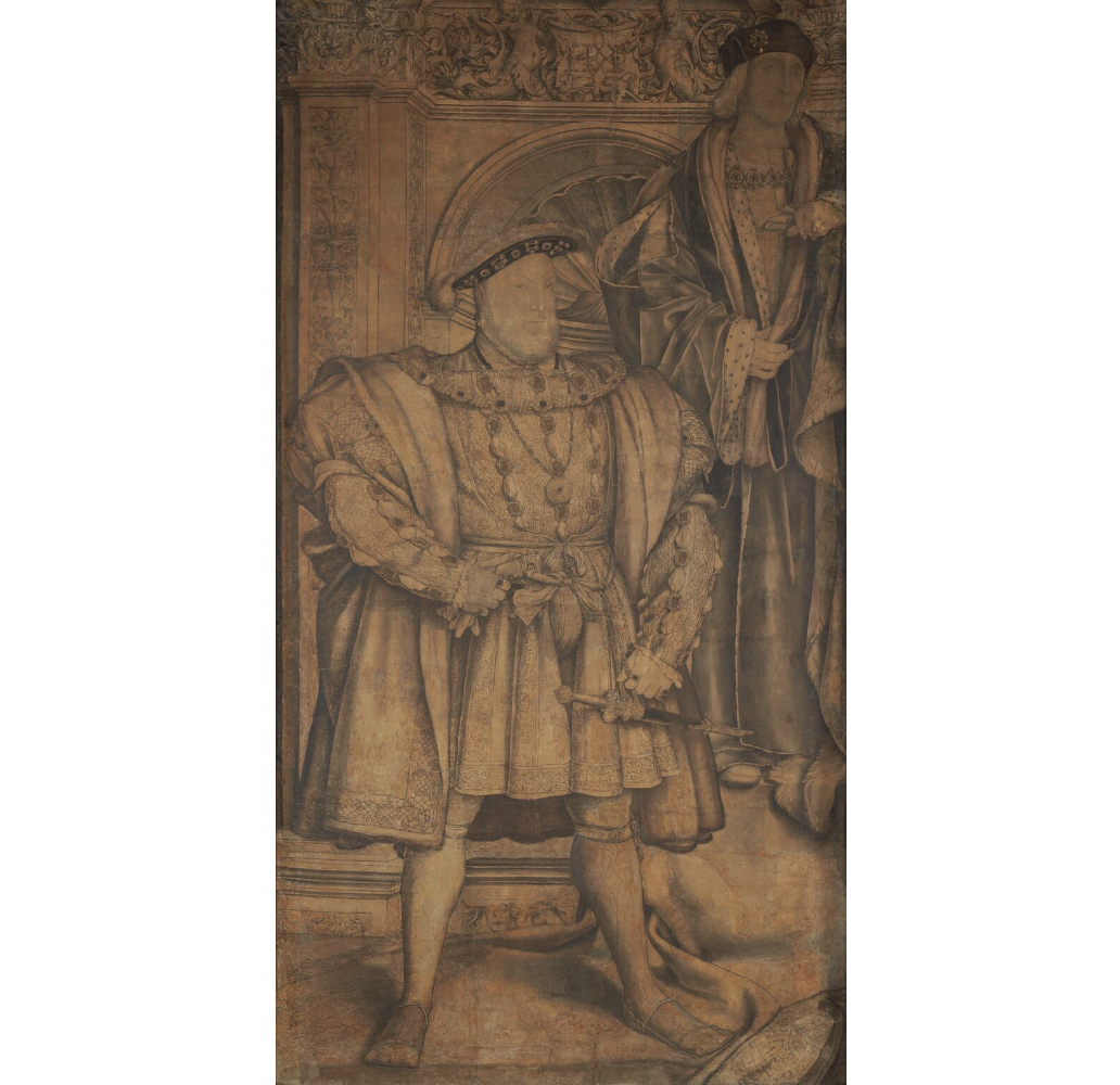Next, I always like to pause on Edward VI, mimicking his father in the Whitehall Cartoon. What I love about this portrait is that it shows the stark contrast between monarch as an office and a monarch as a person. In imitating his father’s pose, we see Edward dressed to the nines with a wide and powerful stance, demonstrating his role as sovereign. But look closer, and the person inhabiting those garments is, quite obviously, just a boy, with skinny legs and a child-like feminine face. I think he might be overcompensating for something. It always fascinates me to see.