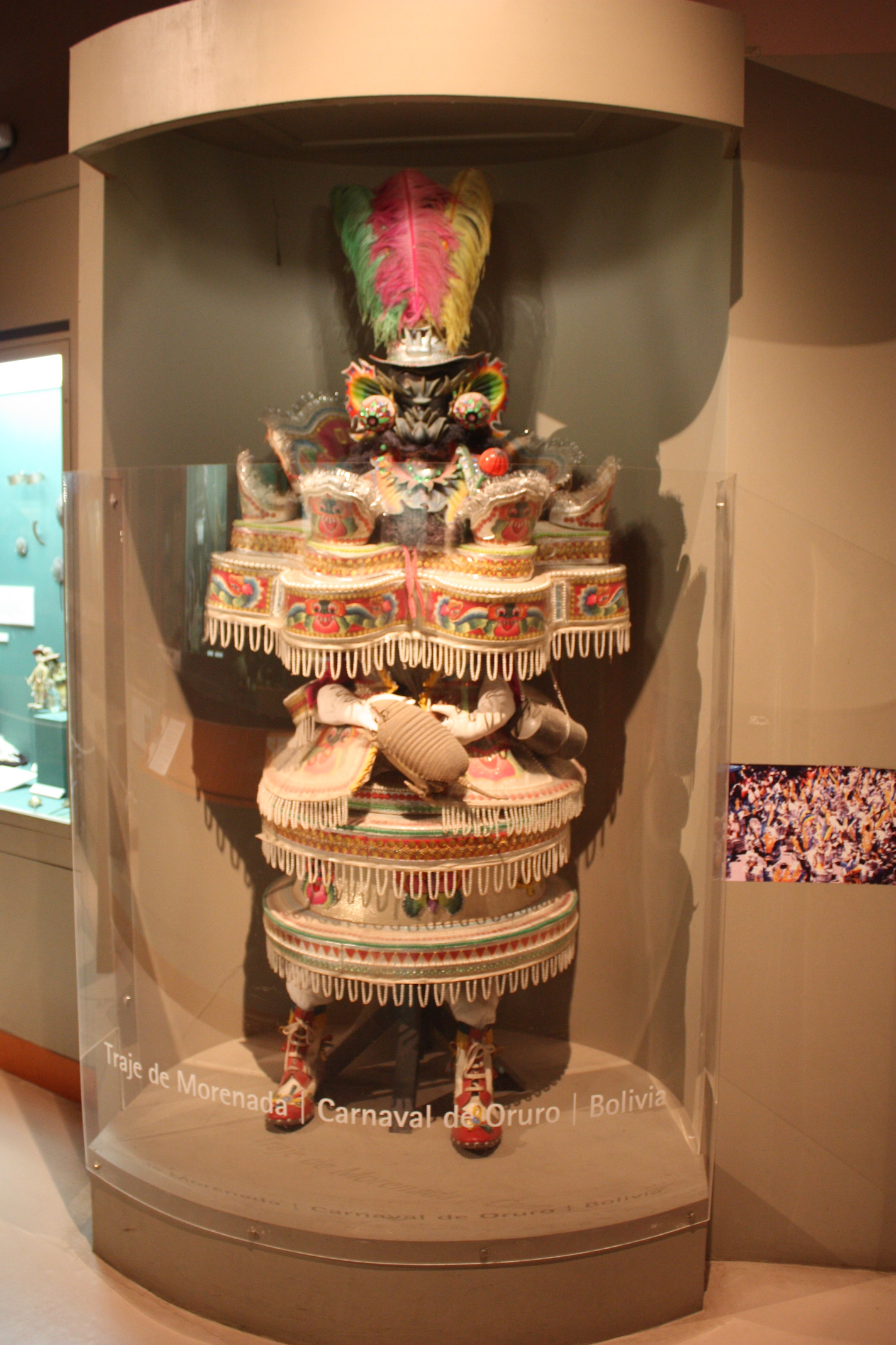 The Ethnographic hall, called "Cultural Mirrors" and inaugurated in 2007, presents the cultural richness of Argentina and South America’s pueblos originarios (native peoples). More than 300 ethnographic objects, including some historical pieces such as the armor of a Chocorí chief and an Araucanian chief or the huge canoes, are harmoniously intermingled with a carnival costume from Oruro or a display that show a current and urban ethnography through the exhibition of mates, radios and magazine photos.