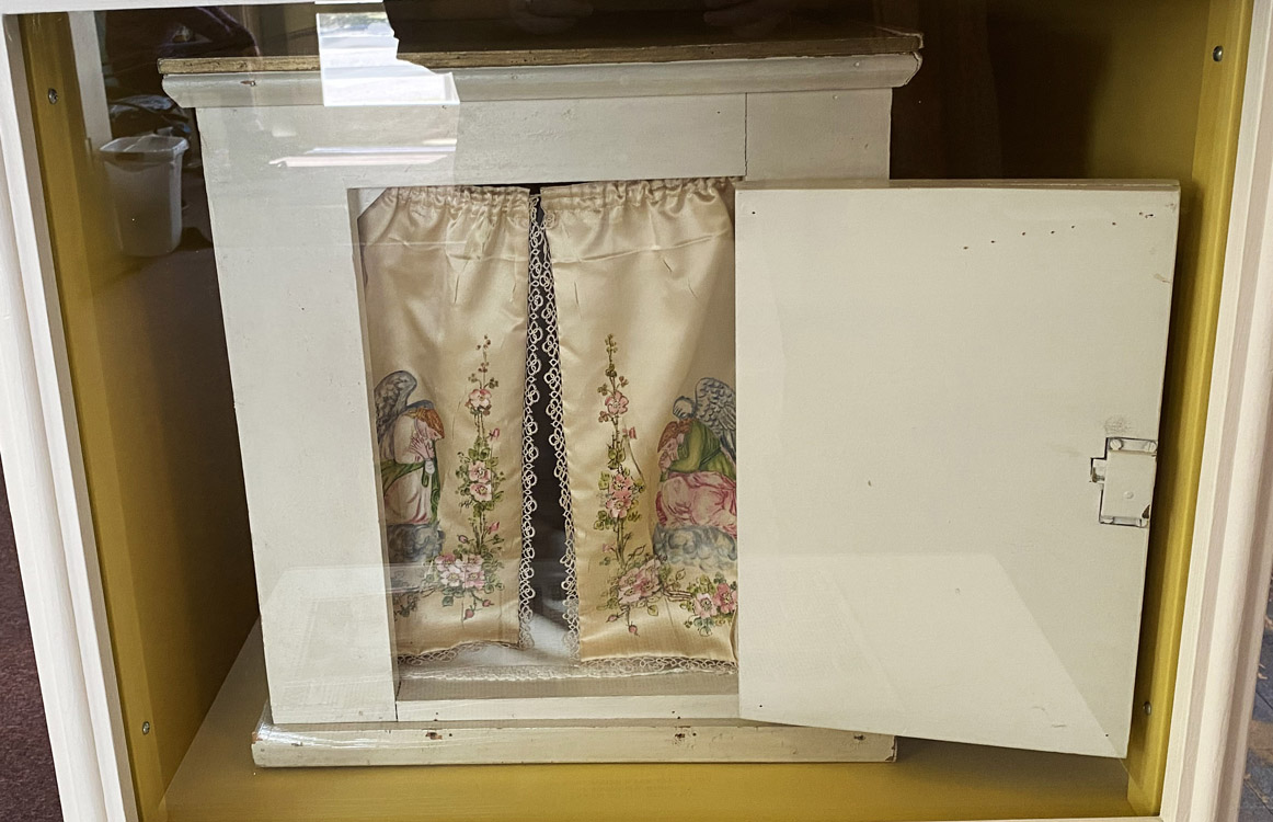 One of the prized possessions of the museum is the tabernacle from the Catholic church that stood on the site at the time of the fire where the museum now stands. It was found three days later lying on the bank of the Peshtigo River which bisects the city, and where many of the residents fled to escape the flames, only for many of them to perish by hypothermia. It was found, miraculously, completely unscathed and with the contents still inside.