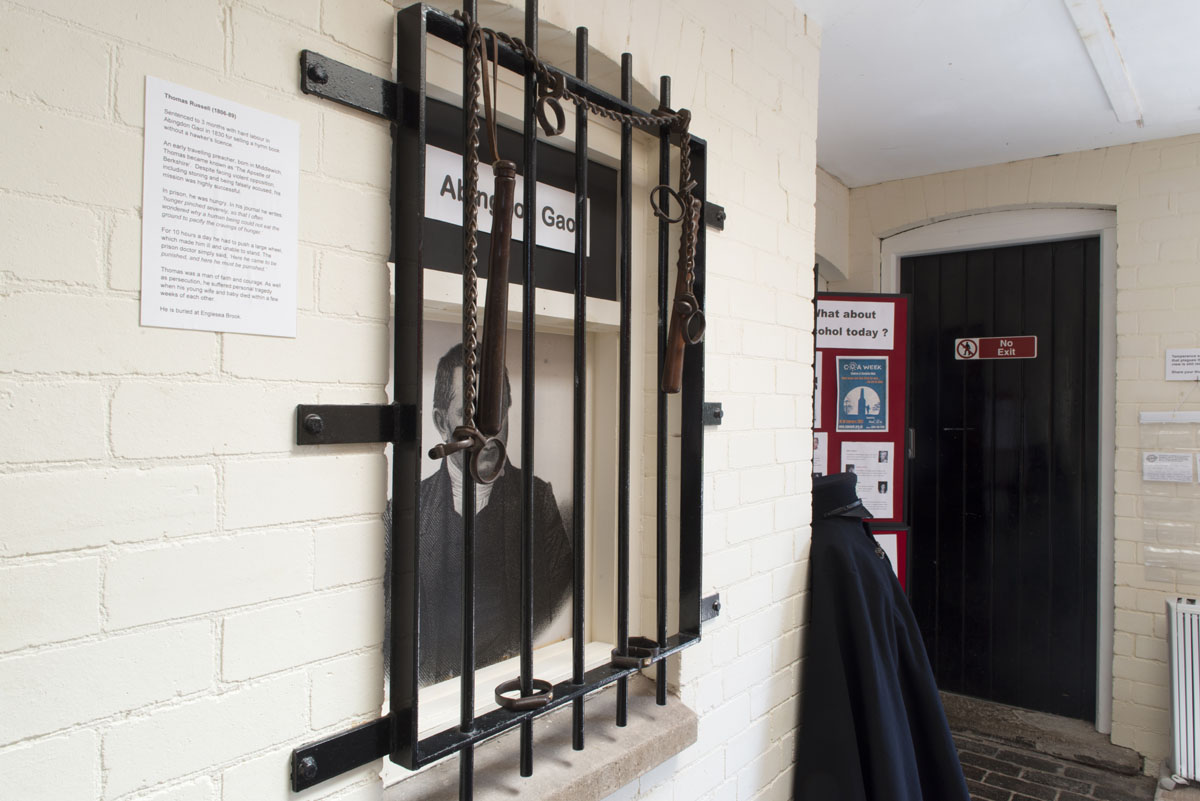 As you leave the main room in the museum you will go up two steps into the ‘Bourne Room’. Displayed here are several artefacts that belonged to Hugh Bourne and William Clowes, including several of their walking sticks, which must have travelled many miles with them during their itinerant preaching. Next you will enter the ‘Bier Room’, where you will find a large funeral bier. This illustrates Hugh Bourne’s funeral procession, which brought him to his final resting place at Englesea Brook. Bourne’s grave can be seen in the graveyard across the road from the Chapel. Built into the wall is a jail cell, containing the portrait of Thomas Russell, who was sentenced to three months hard labour in Abingdon Gaol in 1830 for selling hymn books without a hawker’s licence. Prims were often arrested for their support of social causes. You can open the door behind the cell and have your photograph taken in jail!