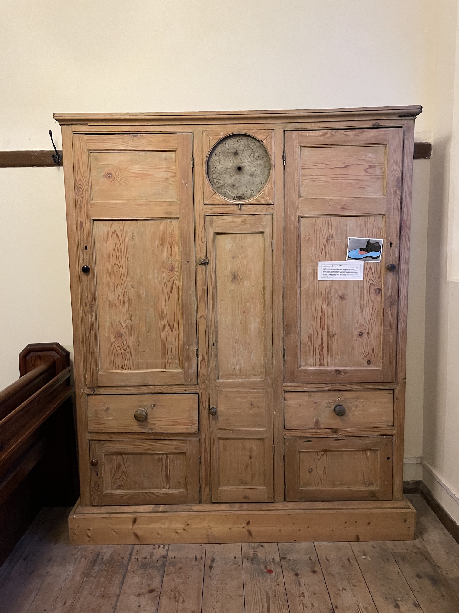 When outside the Chapel you may be surprised by its appearance. The façade looks like a house. As the Prims started by preaching in people’s homes, they wanted their Chapel to continue to have a ‘homely’, welcoming feel, and not look imposing to the working-class, who often felt excluded from the established Church of England. Once you enter the door up a couple of steps (if you require an accessible entrance this is available into the museum) you will look down the aisle between the pews to the pulpit. The pews and pulpit were not original but were added in the late 19th century, when, like the Wesleyans nearly a century earlier, the Prims had become more established and wanted to be seen as respectable. Nearer to you in the immediate foyer you will find an organ to your left, as well as two harmoniums. Prims and other Methodists were known (and still are) for their love of hymn-singing and these instruments exemplify this. Harmoniums were often portable (although they do not always look it) and would be taken to different chapels and gatherings. To the right of the door is a cupboard. It is plain and simple but important to our history. It belonged to Hugh Bourne and it is believed that, as he was a carpenter, he made it himself. It stood in the home of Hugh and his brother, James, at Bemerseley Farm, where they also had their printing press. Hugh was keen to improve education and printed tracts and books for this purpose.